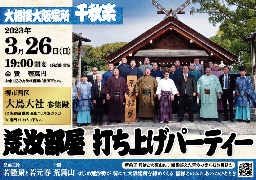 【満員御礼:3月24日】荒汐部屋三月場所千秋楽打ち上げ@堺
