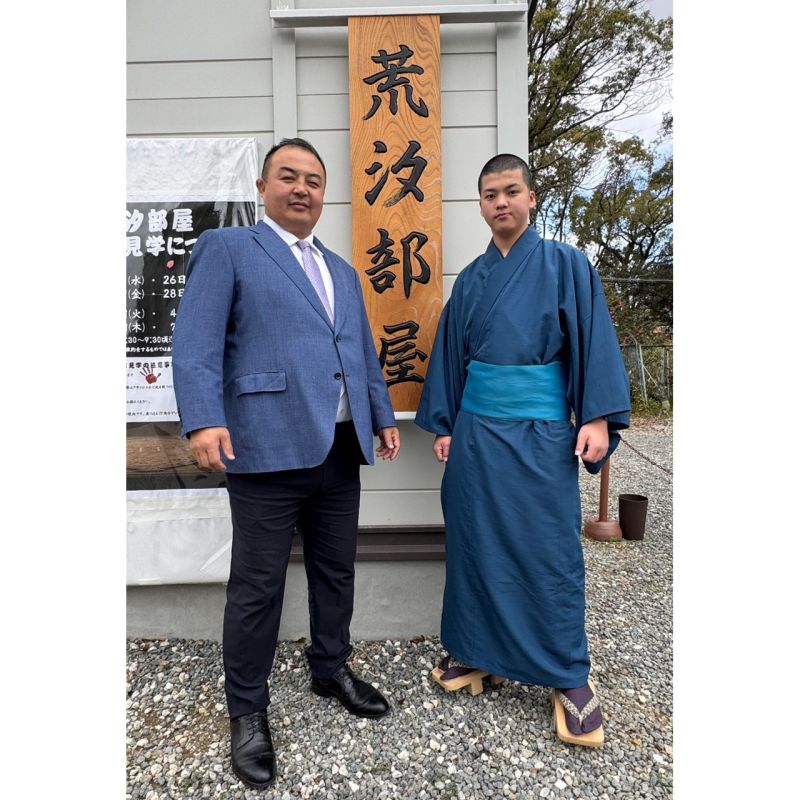 中学校ではソフトテニス部で相撲はテレビで見たことがある程度でしたが,たまたま荒汐部屋の稽古を窓越しに見学していたところ,荒汐がただならぬオーラを感じて声をかけ,以来,約半年間,体験見習いを続けてきました。そして春が近づき,体重も23kgも増え(さすが成長期!),厳しい稽古や部屋での暮らしを十分知った上で,入門を決心。